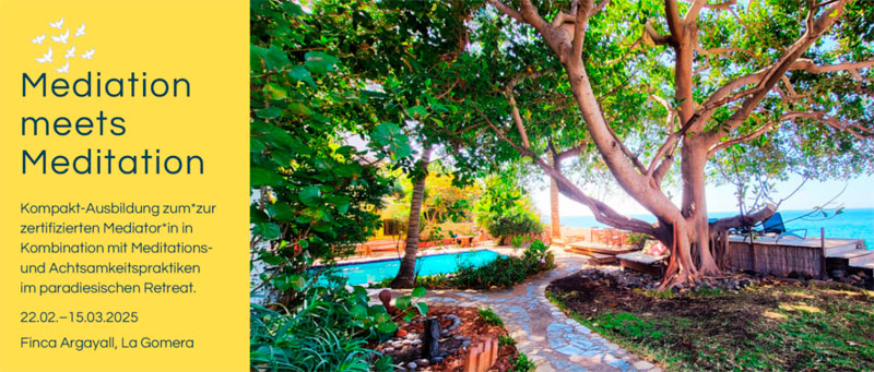 Kompakt-Ausbildung zum*zur zertifizierten Mediator*in in Kombination mit Meditations- und Achtsamkeitspraktiken im paradiesischen Retreat. Finca Argayall, La Gomera